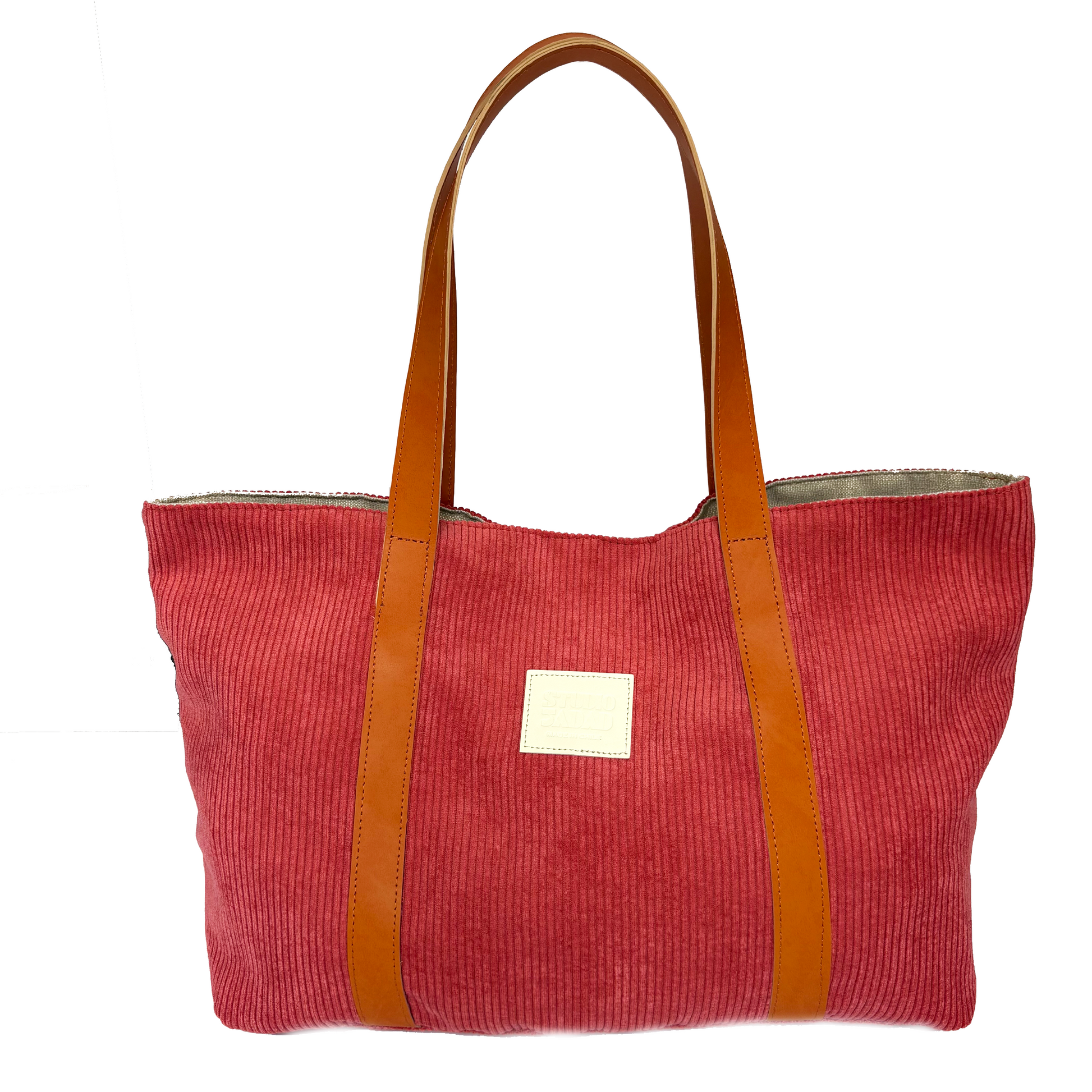 Nura es nuestro bolso de playa que combina tela ligera con el cuero reciclado icónico de Studio Jadad, creando un diseño veraniego, resistente y lleno de identidad.