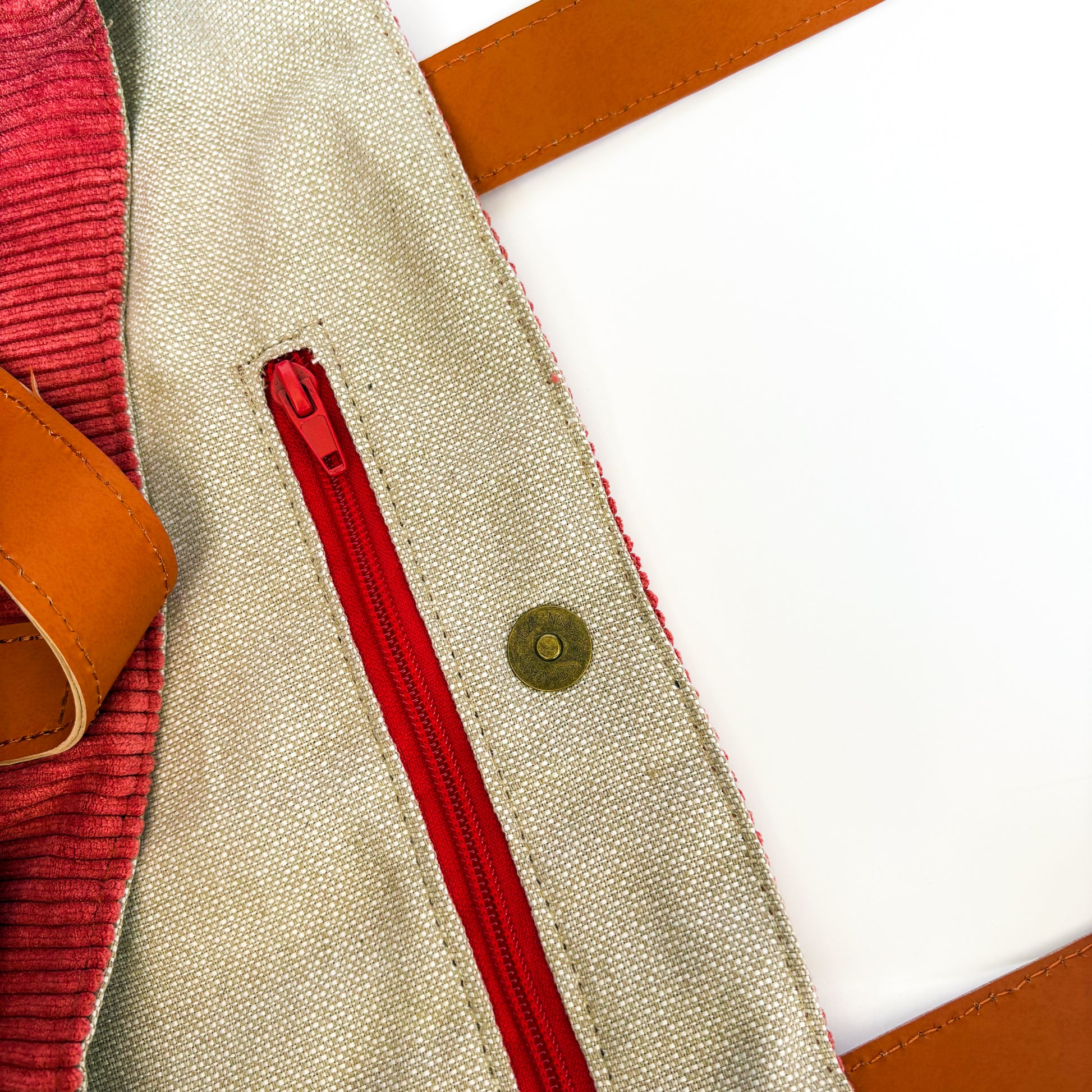 Tiene asas de cuero, un cierre magnético para mantener todo seguro y un bolsillo interior con cierre para guardar lo esencial.